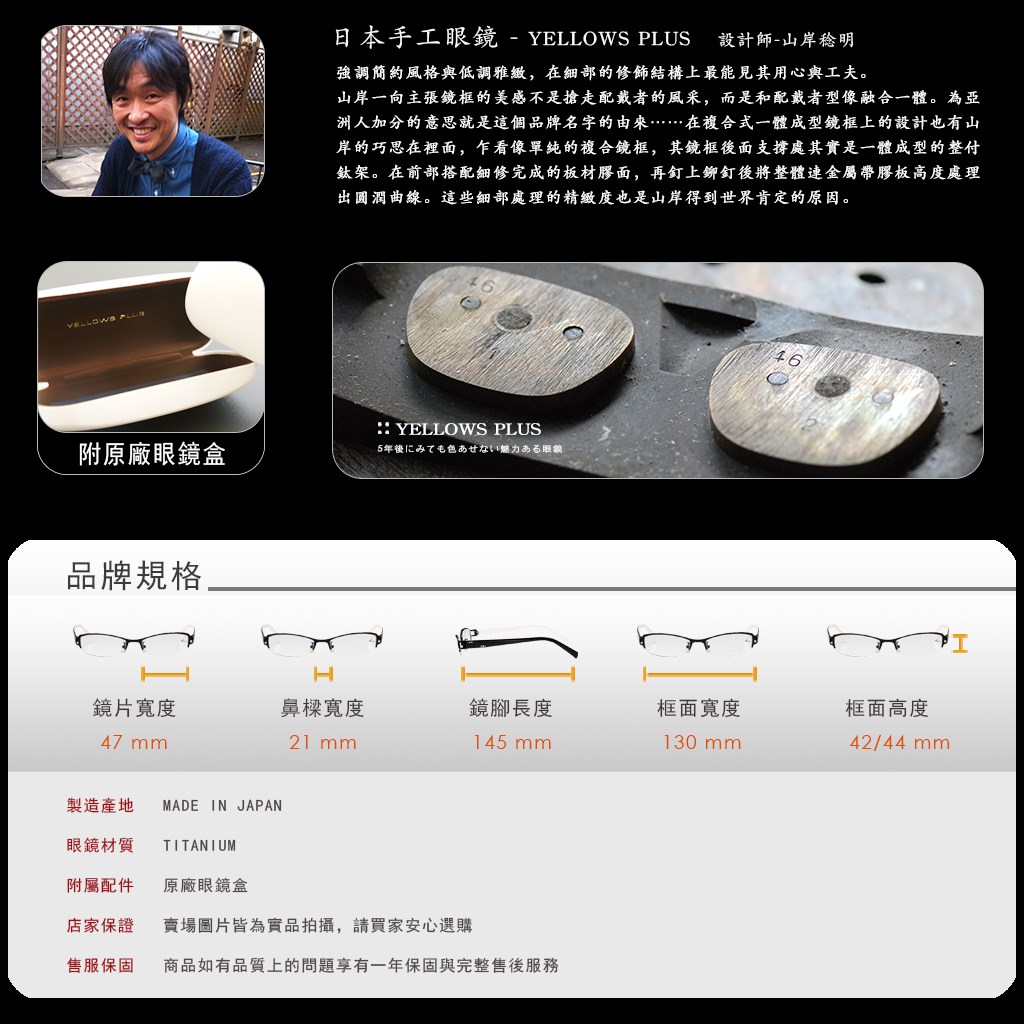 簡約風格 低調雅緻 日本手工眼鏡 YELLOWS PLUS 眼鏡 83002